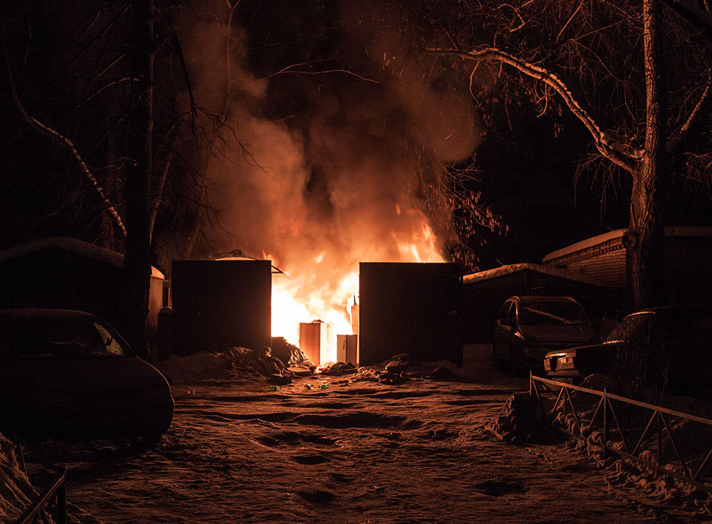 Горящая контейнерная площадка возле "Партизана" в ночь на 15.02.2015 02:40.