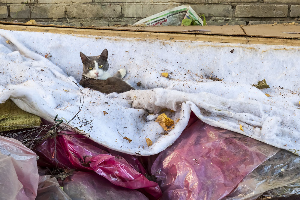 Сейчас живем на юго-западе Москвы, в нашем районе очень много бездомных котов, но здесь очень чисто и зелено. Наблюдаешь за котами, они прямо как на отдыхе, даже забирать и пристраивать жалко)), так они тут комфортно отдыхают)), хотя, конечно, жизнь на улице недолговечна, но есть и долгожители, которые живут уже здесь по 5-7 лет.