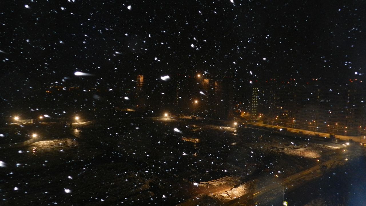 За окном.