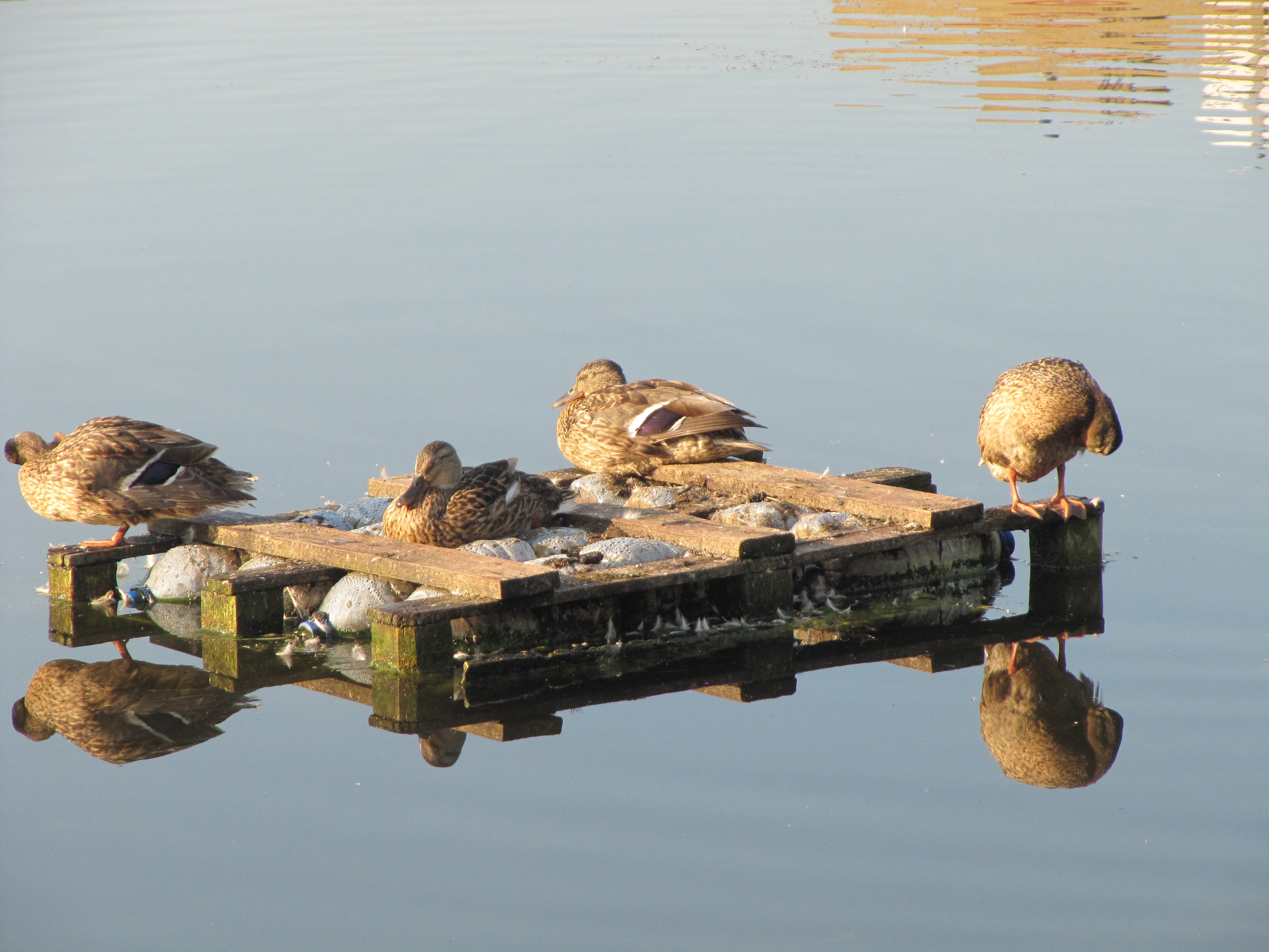 В отражении неба.