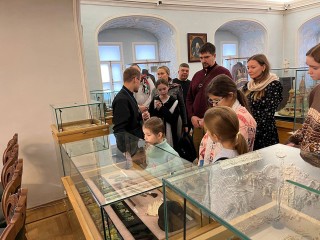 Гости посетили Церковно-археологический кабинет при Московской духовной академии, где собрано около 20 тыс. уникальных экспонатов: предметы церковной старины, иконы, картины, богослужебная утварь, облачения и коллекции старинных монет.