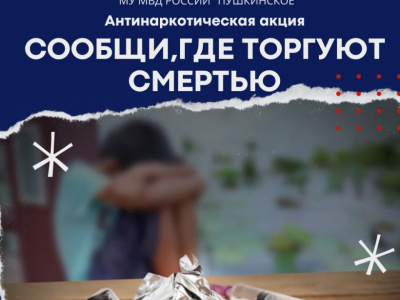 МУ МВД России «Пушкинское» участвует в Общероссийской антинаркотической акции «Сообщи, где торгуют смертью».