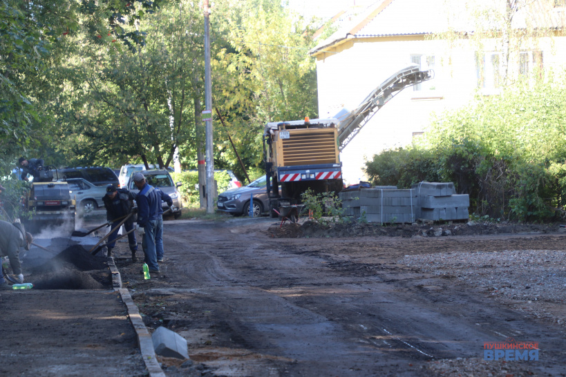 Сегодня во дворе было уложено на тротуары около тысячи квадратных метров асфальта. А всего здесь предстоит заасфальтировать почти 1200 квадратных метров внутриквартальных проездов и почти 1400 — тротуаров. Не считая более двух тысяч квадратных метров новых парковочных пространств. Для оформления асфальтоукладки потребуется почти 1300 штук садовых бордюров и почти 600 больших бортовых.