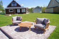 Здесь также будут уместны комплекты из массива дерева для дачи. Большой стол, кресла, стулья — рассчитывайте, исходя из количества человек в семье и сколько собираетесь приглашать друзей. Только не забудьте обустроить настил под мебель (ставить её прямо на газон является дурным тоном) и установить навес от солнца.