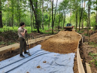 Представитель подрядной организации подчеркнул, что уже на 90 процентов завершен монтаж деревянного опалубка пешеходных тропинок. Во время прокладки строители бережно обходили деревья, поэтому маршруты имеют извилистую форму. Обочины тротуаров отсыпают грунтом и засевают семенами разных трав. Завершат благоустройство лесопарка к началу сентября.