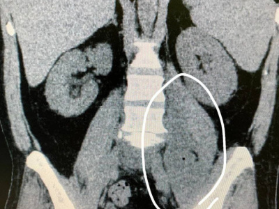 В неврологическое отделение Московской областной больнице имени профессора Розанова В. Н. поступил 45-летний мужчина с жалобами на интенсивные боли в пояснице и нижних конечностях. В результате проведенной компьютерной томографии у пациента абсцесс в структуре правой поясничной мышцы.