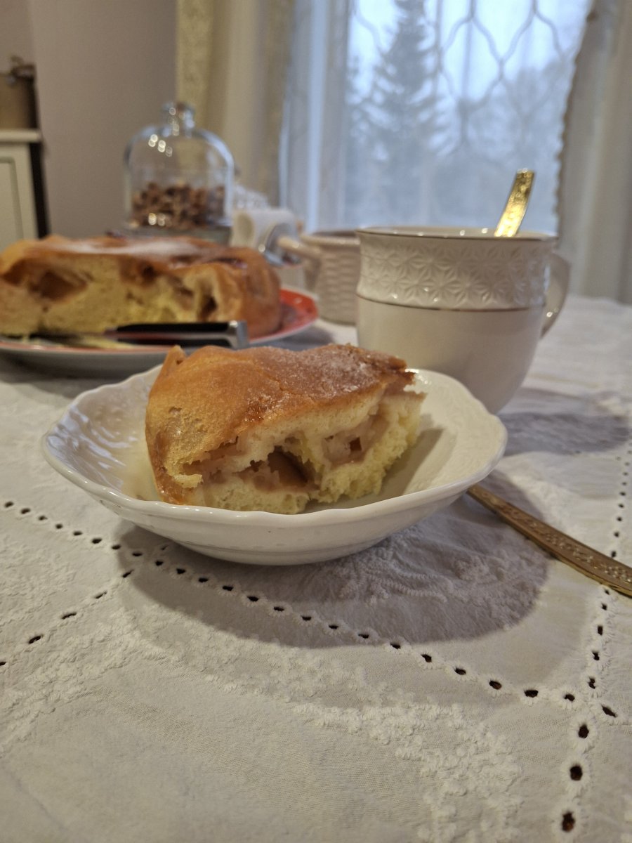 Krosh 17 120 Опубликовано 12 октября После опытов и провалов удалось вкусить вкус блаженства) Это прям м-м-м-м-м! Так. Надо, конечно будет закрепить результат, но основные ошибки я все совершила, все их исправив, вышло очень хорошо) Итак. Без выкрутасов. Классика. 3 яйца, 3 яблока антоновки, штрифеля, чего-то местного и мягкого. Стакан сахара ( 200г), по нынешним здоровым временам, я взяла половину стакана, 100г), Стакан муки, (130г, мне Алиска подсказала, что именно столько муки в гранёном стакане, а у меня гранённого нет, а классический рецепт всё меряет в гранённых стаканах) Щепотка соли, Чайная ложка разрыхлителя, Половинка чайной ложки ванилина, Форма, Сливочное масло. Достать яйца, положить на стол. Минут на 15. Включить духовку на 220. Смазать форму маслом. Яблоки порезать не мелко, чисто на дольки, а дольки на 3 или четыре части поперек. Яйца разбить в миску, сыпануть им соли. Взбить хорошенько. К хорошо взбитым яйкам добавить плавно сахар, не пересттавая взбивать. Взбивать, пока не надоест) В муку добавить разрыхлитель и ванилин. Перестать взбивать яйца с сахаром. Взять сито. В яйца через сито сыпануть белый порошок) Замешать лопаткой или ложкой аккуратно разрыхлённо-ванильную муку в сахарные яйца. Как смешается сухое со связующим, добавить яблоки, ещё раз промешать. Вывалить в форму. Запихать в духовку. Сказать Алиске, что 30 минут засекла. Помыть все эти миксеры, миски, доски, стаканы, сита, лопатки, ложки, столы. Сказать Алиске спасибо. Оставить в духовке. Вспомнить, что надо попробовать, сработало ли это) Достать, переложить, порезать убедиться) Кайфануть) . 2 1 3 Всё будет так, как надо, даже, если будет наоборот. Поделиться сообщением Ссылка на сообщение